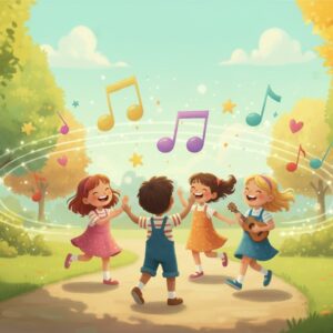 Tu słowa zamieniają się w piosenki, a rymy i zabawa wciągają dzieci w muzyczną przygodę! Znajdziesz tu gotowe piosenki do pobrania w formacie MP3 oraz teksty pełne humoru, kolorowych historii i rytmu.