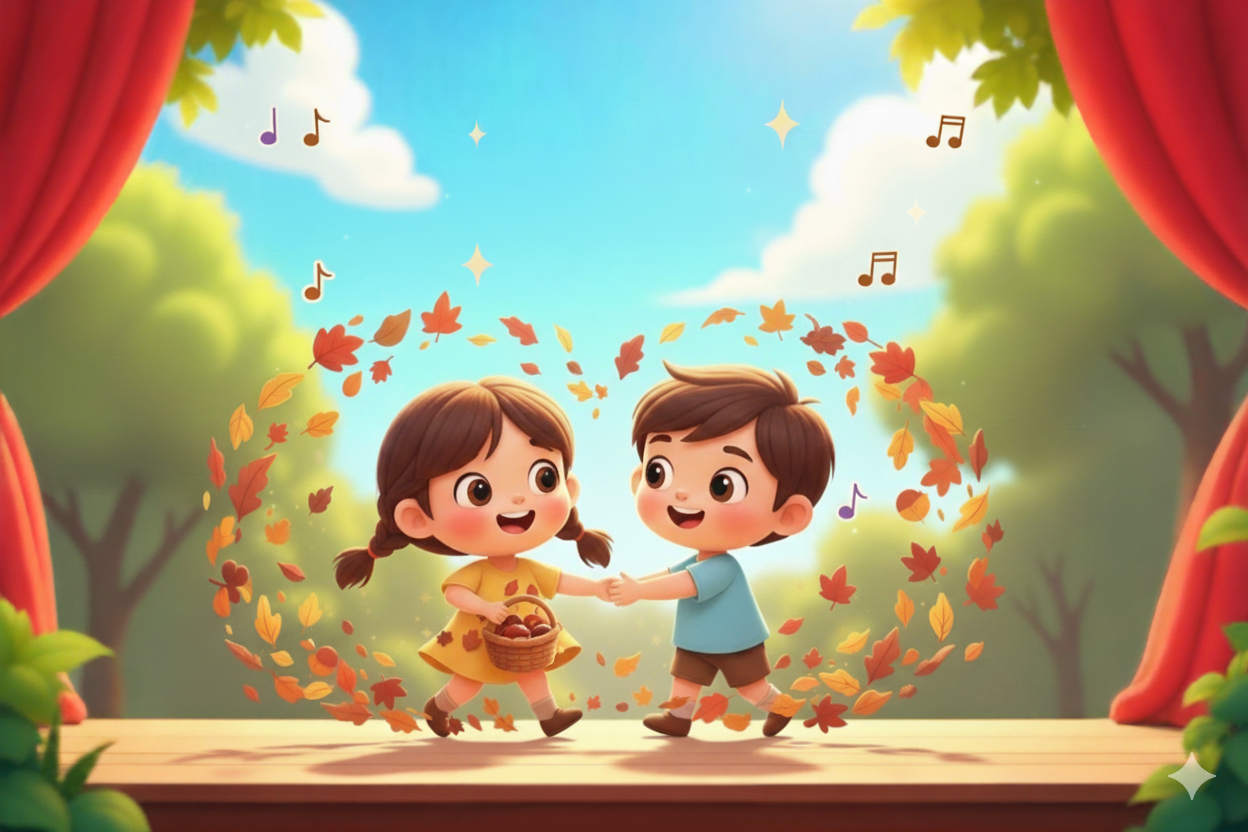 Poznaj autorską piosenkę „Liście tańczą walca”, która przenosi najmłodszych w bajkowy świat jesieni. To pogodny i rytmiczny utwór, opowiadający o tańczących na wietrze kolorowych liściach. Doskonale sprawdzi się podczas jesiennych uroczystości, przedszkolnych zajęć muzycznych i szkolnych przedstawień.